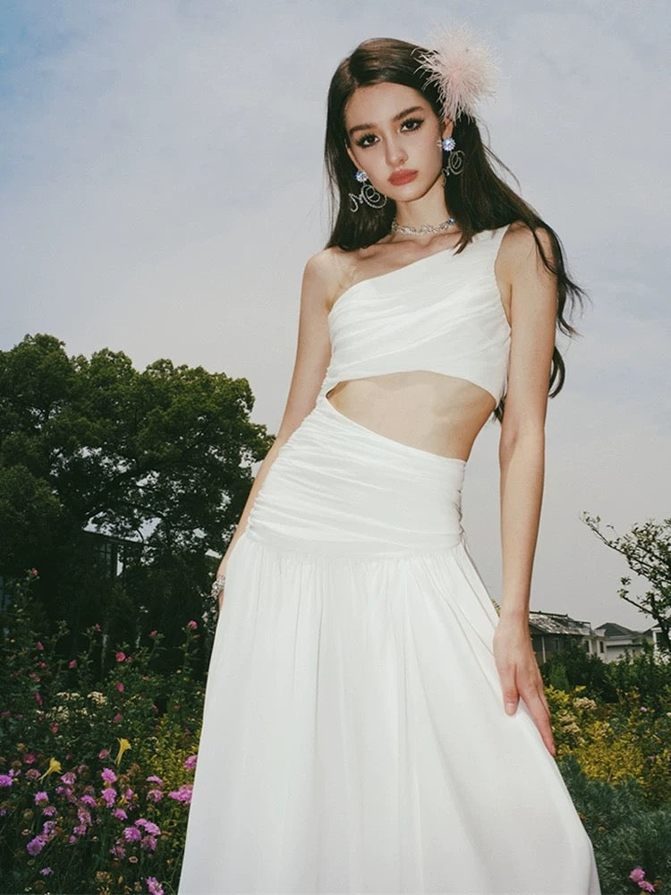 Elegant A line One Shoulder Sleeveless White Long Evening Party Gowns Evening Formal Dresses Prom Dress HZ1121
