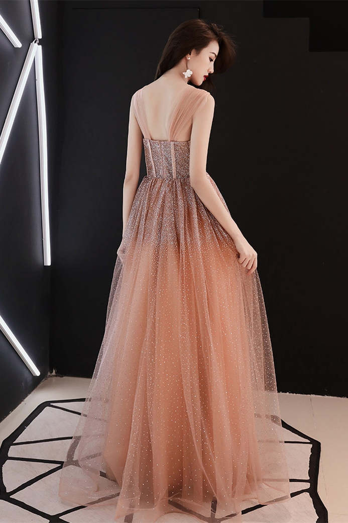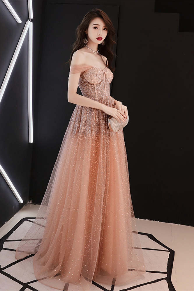 Stunning Champagne Sequins Long Formal HZ0308